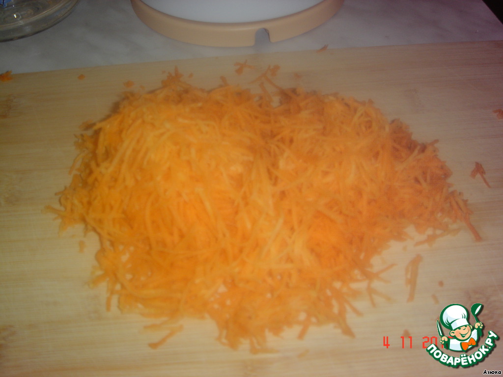- Морковь (через терку) — 3 стак.