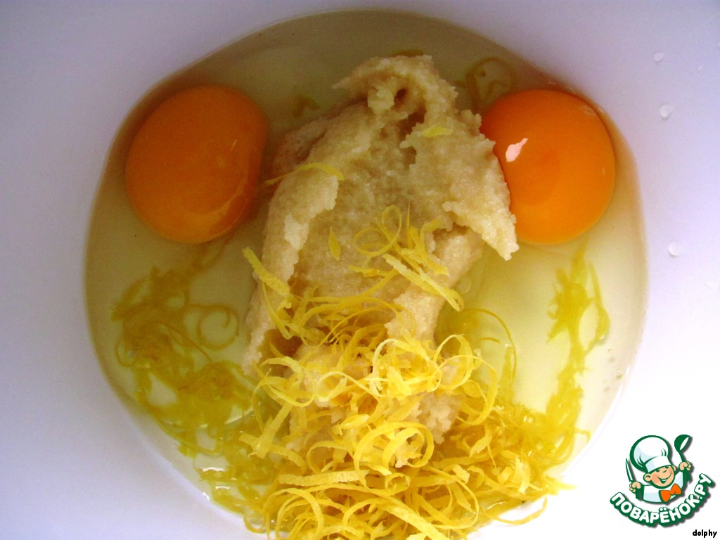 Если же вы пасту приготовили только что, и она еще мягкая, то можно сразу добавлять к ней цедру одного лимона, 2 яйца и взбивать (насадками для взбивания) сначала на небольшой скорости до однородного состояния. -