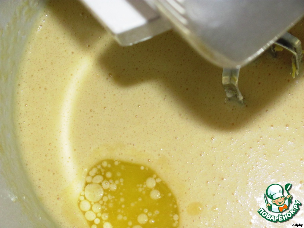 Затем скорость увеличить и взбивать 3 - 5 минут, пока масса не станет кремообразной и бледной.