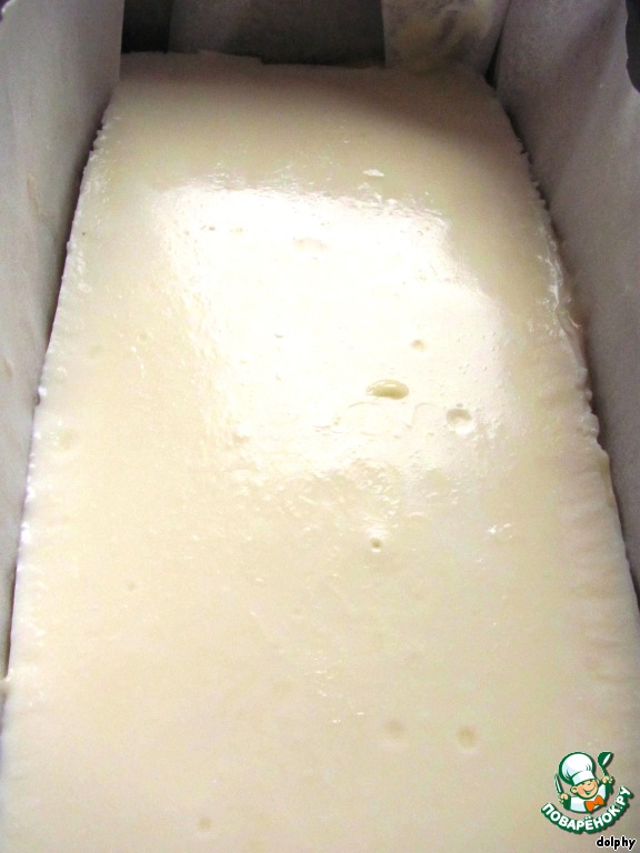Вылейте в подготовленную форму и поместите в морозилку на 2 - 3 часа, пока не затвердеет. -
