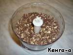 Включаем духовку на 180 градусов. Растапливаем масло или заранее достаем из холодильника, чтобы размягчилось – роли не играет, на Ваше усмотрение. Шоколад (лучше все-таки пористый!) и лесные орехи измельчаем в блендере до небольших кусочков.