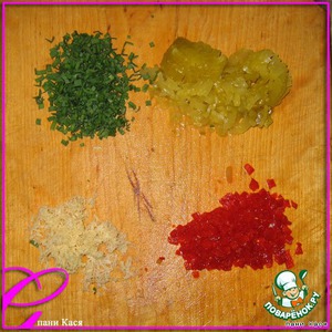 Нарезали как можно мельче, хрен (выкопали только что) натерли на терке