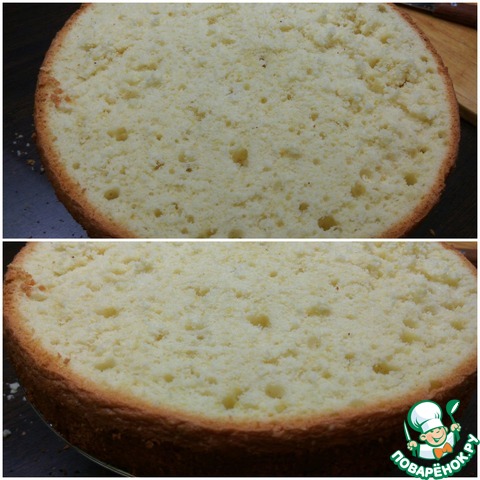 Из такого бисквита можно приготовить торты, но лучше печь коржи отдельно, а не один большой, который Вы будете резать вдоль, так как корж очень мягкий.