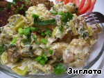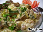 Теперь о данном конкретном блюде: сметану я беру именно потому, что мне нравится присутствие небольшой кислинки. Если Вам это не по вкусу - попробуйте использовать некислую сметану или сливки. А жирность - в зависимости от того, насколько сытное блюдо Вы желаете получить.