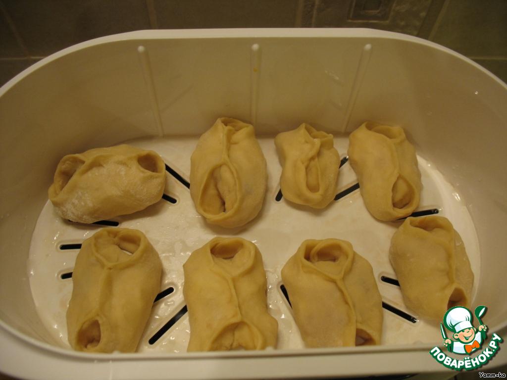 Смазываем маслом чашу пароварки, выкладываем туда наши вареники и ставим на 25-30 минут. До готовности картофеля.
