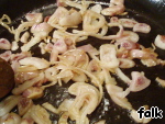 А в сковороде, где жарили мясо, обжарим полукружья лука-шалота