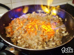 Всё это обжариваем быстро, перемешивая или встряхивая сковороду -