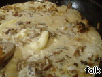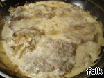 Когда пламя угаснет, введем сливки, хорошенько перемешаем