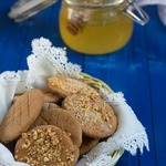 Соединяем масло и мед (если мед загустевший, как у меня - его лучше чуть-чуть подогреть в СВЧ), добавить молоко и яйцо, все как следует перемешать. Муку смешать с разрыхлителем, просеять, ввести в тесто. Получается мягкое эластичное тесто. Можно сразу начать формировать коржики, но лучше немного подождать, отправив завернутое в пленку тесто в холодильник отдыхать минут на 30.