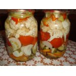 • Сюда же добавляем уксус, соль (я положила 1 ч. л.), орегано (у меня был сушеный, если свежий, то по рецепту 2 веточки) и перемешиваем. Пробуем на вкус, если нужно добавляем соль, т. к. в рецепте она идет на вкус (мне достаточно было 1ч. л.) и укладываем поплотнее в простерелизованные баночки. У меня получилась одна баночка (та, которая на фото).