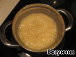 Всыпаем сахар и, помешивая деревянной ложкой, кипятим 5 минут. У меня сахар топиться не пожелал, я даже добавила в него немного сливок, только цвет изменил на кремовый. -