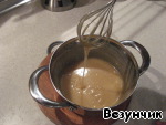 Затем в кремовый сахар вливаем сливки, взбивая венчиком. Смесь тщательно перемешиваем и кипятим, постоянно помешивая, 10 минут.