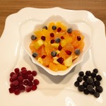 Ягоды размораживаем. Вообще, черника вкусна в салате, но очень окрашивает остальные ингредиенты, поэтому на ваше усмотрение.