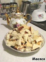 Поварята, прошу, не кидайтесь сразу тапками! Я знаю, что на сайте полно "картошек", сама недавно клевала поваренка за очередное однотипное пирожное. Но! На днях наткнулась на рецепт по ГОСТу. Он меня немало удивил, так как с детства привыкла к коричневой внутри и снаружи "картошке", изготовленной из печенья и сгущенки. Мама делала такую в детстве. Правда, еще тогда мелькала у меня мысль, что раз это картошка, то должна она быть белой внутри, но как-то привыкши к стандартной темной, этим вопросом больше не задавалась! Но сегодня хочу вам предложить рецепт, приближенный к ГОСТовскому. Оказывается, настоящая "картошка" должна быть коричневой снаружи и белой внутри. А как это делается, я вам покажу! P. S. Я честно искала подобный рецепт на сайте, но просмотреть 77 страниц "картошки" выше моих сил...