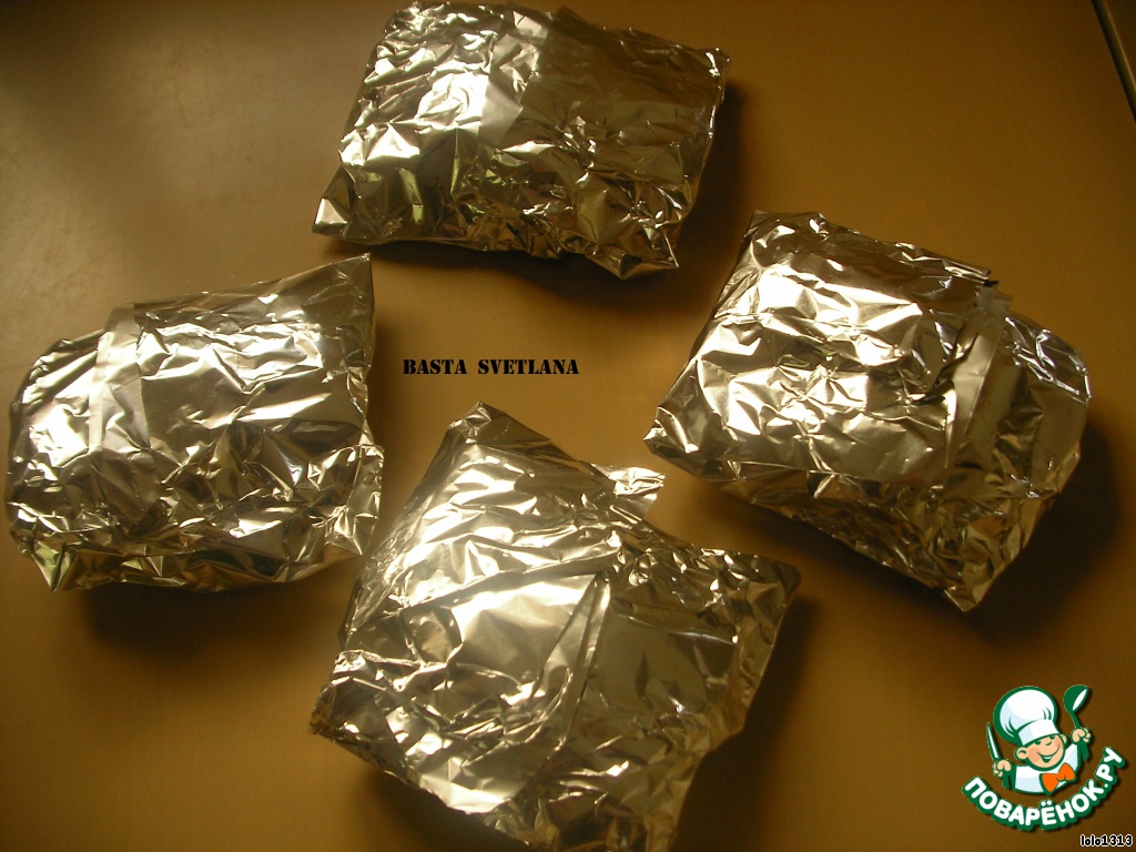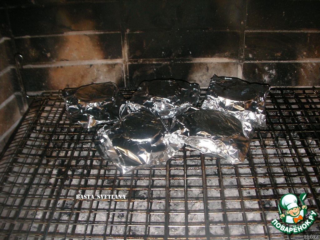 Готовые пакетики запечь на углях до некоторого расплавления халвы.
