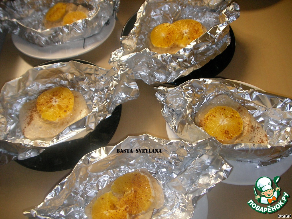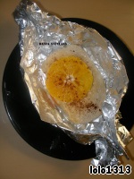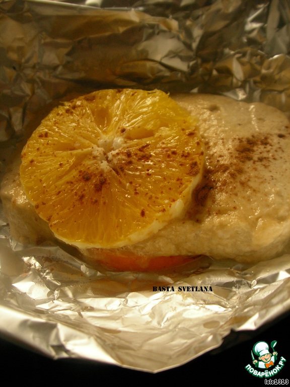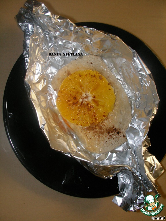 Подавать сразу же после запекания, в фольге (придать фольге форму лодочки), предварительно посыпать корицей.