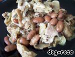 Далее добавляем грибы и фасоль (без жидкости, жидкость от фасоли я не выливала и добавляла понемногу при тушении), карри и тушим до готовности (у меня получилось 25 минут).
