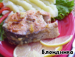 Рецепт этого блюда был размещен на сайте в 2009 году пользователем Татьяна Мухортова под названием "Горбуша в цитрусовом маринаде" и иллюстрирован мной в рамках акции "Раскраски". В первую очередь в этом рецепте меня привлек именно маринад, несколько необычный для рыбы. Благодаря ему горбуша, которую все мы знаем как не очень-то сочную рыбу, которую легко пересушить при жарке, просто заиграла новыми красками. Хотите узнать, что за маринад - заходите! ; -)