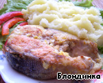 Привожу рецепт кляра, который использую всегда и который можно применить и в этом случае. Желтки 4 яиц тщательно смешать с 200 мл молока, щепоткой соли, щепоткой сахара, постепенно всыпать 150 гр муки, влить 1 столовую ложку растительного масла. Дать постоять. Перед самой жаркой ввести взбитые белки (4 штуки). Но, повторюсь, можно обойтись и без кляра. Рыба получается с необычной цитрусовой, чуть сладковатой нотой, очень приятная и не сухая. -