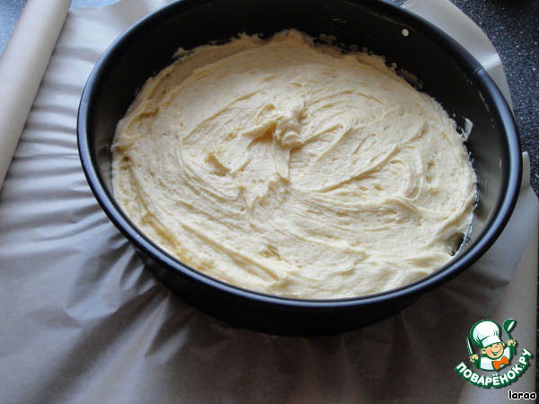 Форму застелить пекарской бумагой или очень хорошо смазать маслом. Выложить тесто. Поставить в разогретую духовку и выпекать 20 мин. при 175 С. Остудить.
