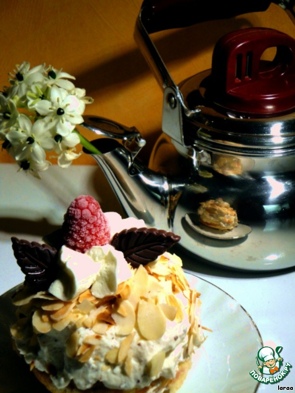 На День рождения "Поваренка" приготовила эти роскошные пирожные. Предлогаю всем поднять бокал шампанского или чашку чая и угоститься кусочком.