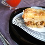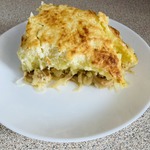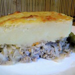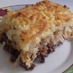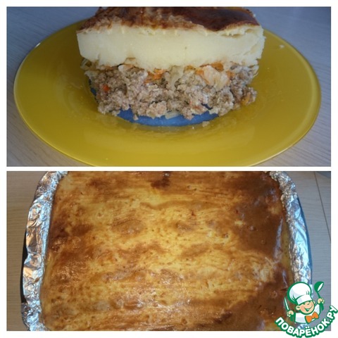 Рецепт этого блюда был размещeн на сайте в 2010 году пользователем Светлана Брегель под названием "Немецкая запеканка" и иллюстрирован мной в рамках акции «Раскраски». Эта запеканка – очень простое повседневное блюдо, не претендующее на красоту и изысканность. Я сама иногда готовлю нечто похожее, так как мне нравится сочетать этот набор продуктов (за который, я думаю, эта запеканка и получила свое название). Сама я, наверное, такой рецепт никогда бы не стала размещать, но, коль скоро он все-таки существует на сайте, я решила раскрасить его за одним из наших семейный ужинов. Запеканка удалась ))) Не меняла ничего, единственное дополнение от меня – это черный и душистый перец в фарш. Кстати, автор пишет, что для этой запеканки можно использовать любой фарш, я же считаю, что лучше всего свиной. Количественное соотношение продуктов можно менять по своему вкусу.