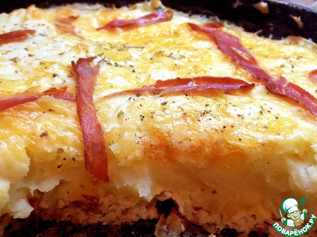Картофель отварить и сделать крутое пюре. Я добавила немного молока.