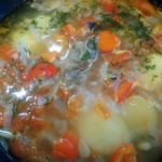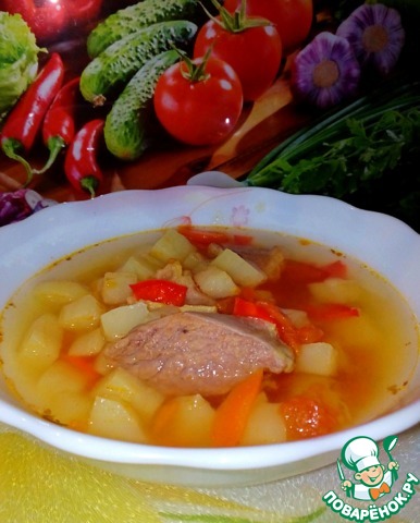 Рецепт этого блюда был размещeн на сайте в 2008 году пользователем Nanosha под названием "Хомшурбо" и иллюстрирован мной в рамках акции "Раскраски". Исходный рецепт подвергся доработке, однако, основная линия выдержана. В результате имеем ароматный, красивый и вкусный суп.