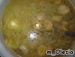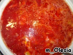 После того, как картофель и пшено сварились, отправляем в наш борщ пассерованные с томатной пастой овощи.
