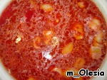 Добавляем к пассерованным овощам томатную пасту, разведенную водой, и оставляем на плите еще минут на 5-7.