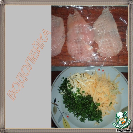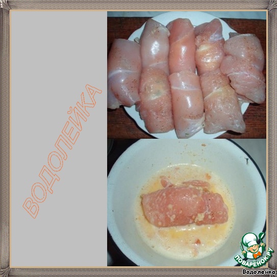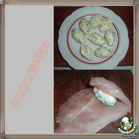 • Сырно-масляную массу хорошо перемешать, немного присолить и сделать из нее небольшие шарики (по количеству отбитых филешек). Шарики разложить на тарелку и убрать в иорозилку минут на 20.