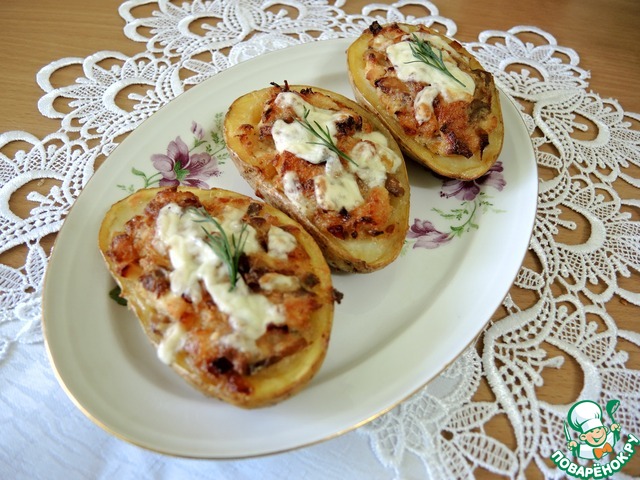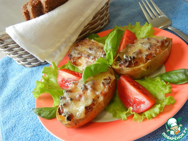 Ставим в разогретую до 180-200*С духовку и выпекаем до готовности картофеля. В каждой духовке это время разное (если картофель был предварительно проварен, тогда время, естественно, уменьшается).