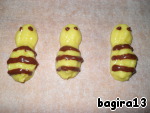 Затем нарисовать пчелкам глазки и полосочки, растопив темный шоколад (пару квадратиков) на водяной бане.