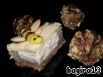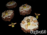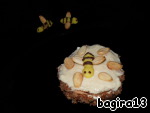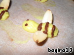 Жареный миндаль (несколько штук) нарезать на пластины (либо использовать готовые миндальные лепестки) и приделать пчелкам крылышки.