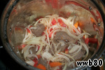 Снизу будут готовиться мясо и овощи, а сверху (на пару) - крупа. -
