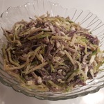 При условии, что у вас уже есть вареные яйца и кусочек отварного мяса, этот салат идеален для встречи неожиданных гостей!