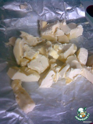 Маргарин режем на кусочки, чтобы быстрее размяк.
