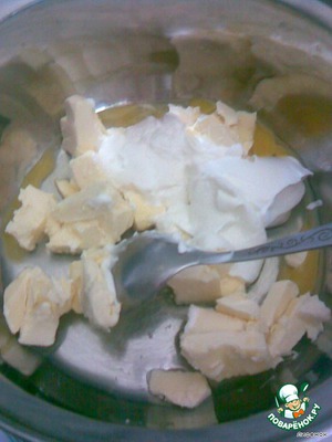 Смешиваем маргарин, яйцо, уксус, сметану и добавляем муку.