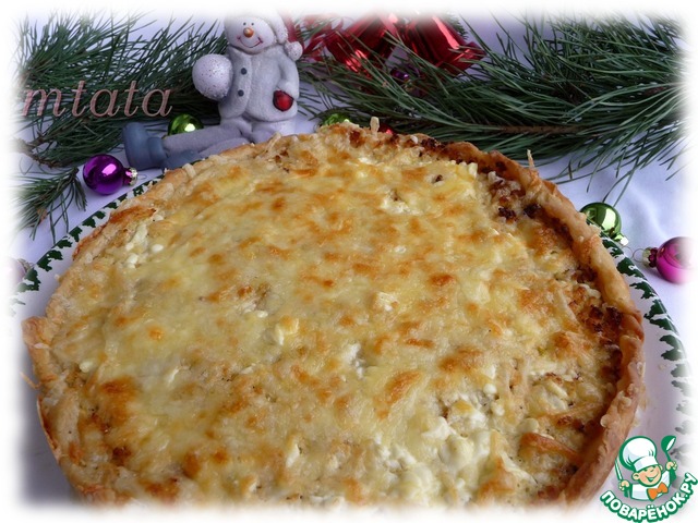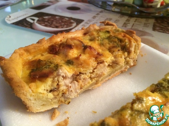 Аппетитный пирог с курицей, сметаной и нежным сыром.