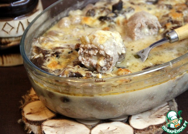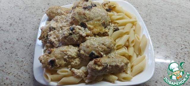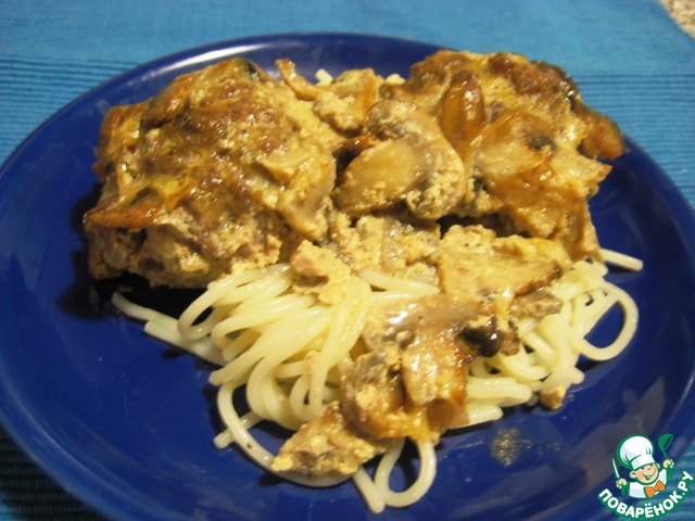 [+5]Проблем с формовкой не возникло, на всякий случай обваляла биточки в муке. При приготовлении соуса, добавила ещё грибной бульонный кубик. Готовила в духовке в форме с крышкой, которую убпала за 10 минут до готовности. На гарнир домашние пожелали макароны. Высоко оценили результат