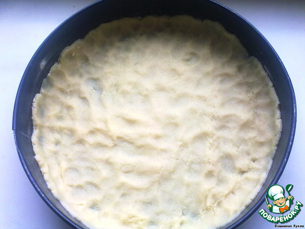 Затем разделить тесто на 2 неравные части, меньшую убрать в морозилку, а большую выложить в форму и убрать в холодильник на 1 час.