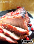 Я кладу грамм 300 клюквы мороженой и сверху-мясо,завязываю рукав и в духовку на 160-180 гр.часа на полтора-два !!!!!! Потом разрезаю верхушку и 10-15 мин ещё в духовке,подпекается !