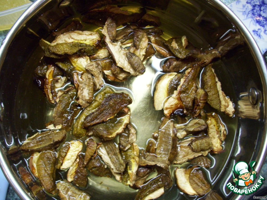 Грибы залить 1,2-1,5 литра холодной воды, поставить на огонь, дать закипеть и варить на медленном огне под крышкой около 10 минут.