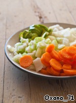 Овощи нарезать (хотя автор предлагает их не резать, но потом он их практически выкидывает, что для меня не рационально). Я добавила ещё молодой цуккини, но это, по желанию. Добавить к чечевице......