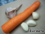 Лук – кольцами или полукольцами. Морковь трем на «корейской» терке или на обычной крупной. Чеснок пропускаем через пресс.