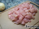 Готовим продукты. Куриное филе тщательно промываем, если требуется, удаляем пленки, даем обсохнуть. Чистим лук,