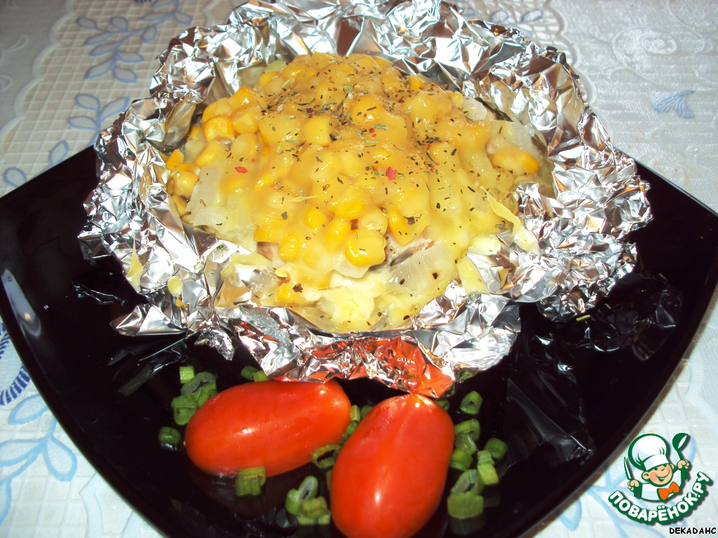Рецепт «Рыба с кукурузой и сыром в фольге»: