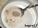 Снять с огня, добавить желатин и 3 г кофе, процедить. Остудить до 45 градусов.