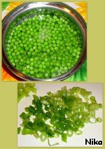 - Горошек зеленый (свежий, замороженный) — 300 г