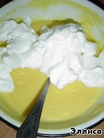 К яично-сахарной смеси добавляем сметану и перемешиваем,